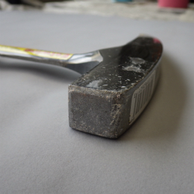 145-1 今回は、岩石を調べる道具の一つである「エスチング・ハンマー」をご紹介します。大工さんの使う金槌に似ていますが、岩石を研究するための専用道具です。このハンマーで岩石を叩き割り、割れた部分の様子をじっくり観察して、岩石の種類を調べます。本来は地質研究者が使う道具なのですが、考古学にとっても大事な道具なのです。そのわけをお話しします。