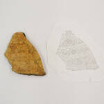 ➀ 遺物より、少し大きめに画仙紙を切ります。遺物と画仙紙が動かないように、裏側まで巻き込める大きさにします。薄くて柔らかく、水に強い画仙紙は、墨ののりも良いため拓本に適した紙のひとつです。