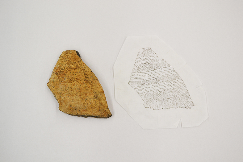 発掘調査で出土した遺物は、形や文様を図化したり写真を撮影したりして調査研究の基礎資料を作成していきます。その中で使う方法のひとつに、拓本と呼ばれる方法があります。