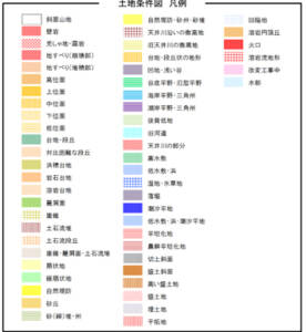 土地条件図とは、防災対策や土地利用・土地保全・地域開発等の計画策定に必要な、 土地の自然条件等に関する基礎資料を提供する目的で作成された主題図です。
