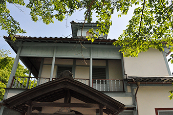 自然豊かな土地柄、公開中の昼間は戸口が開け放たれているため、夏には虫が、秋には落ち葉が舞い込みます。台風の後は、異常がないか等々。おすすめの逸品ならぬ逸棟?ですが、明治時代初期の擬洋風建築の小学校として、安土の地で大切に保存・公開しています。(大槻 暢子)