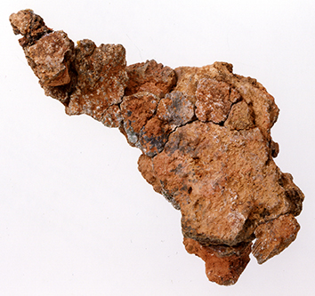 送風孔付炉壁(1)は送風孔付近、炉の中段上半に位置します。炉壁の内面のカーブの状況から、炉の内径は約100㎝に復元できます。炉壁(2)は送風孔の左下、中段下半から基礎部分に位置します。送風孔付炉壁(1)の左下に接合します。炉壁の内面のカーブの状況から、炉の内径は約65㎝に復元できます。炉壁(3)は送風孔の右下、中段下半から基礎部分に位置します。送風孔付炉壁(2)の右下に接合します。炉壁の内面のカーブの状況から、炉の内径は約65㎝に復元できます。