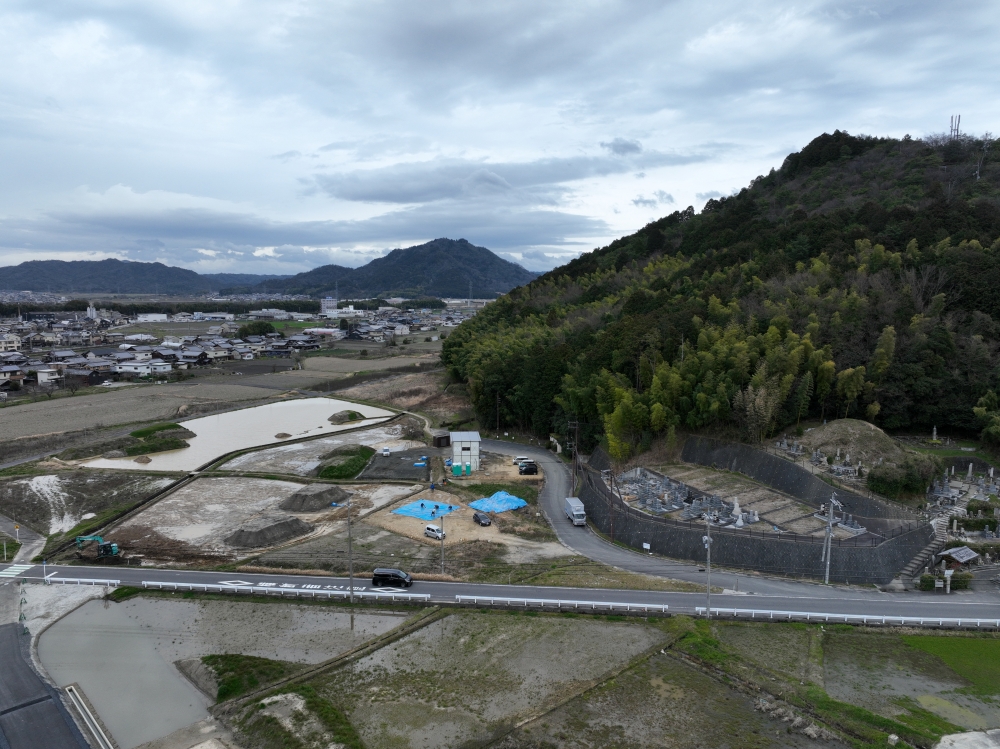 六地蔵遺跡(ろくじぞういせき)は栗東市の北東部に所在する遺跡です。野洲川の左岸にあたり、標高222.9mを測る日向山の北側に広がっています(写真1)。
