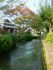 醒井宿にはヤマトタケルに由来する名水「居醒めの清水」を源流に持つ清流・地蔵川が流れています。江戸時代後期に中山道の観光名所を描いた『木曽路名所図会』には、「三水四石の名所あり 町中流れ有て至って清し・・・」「この清水の前には茶店ありて常に茶を入れ醒井餅とて名産を商う 夏は心太(ところてん)素麺を冷やして旅客に出す みな清泉の潤ひなるべしとぞ志られける・・・」とあり、当時から宿場町に清水が流れ、その水を使ったいろいろな食べ物が供されていたことがわかります。なかでも「醒井餅」は全国的に名を馳せた名産品で、当時の複数の書物にも見られます。いくつかその例をあげてみましょう。