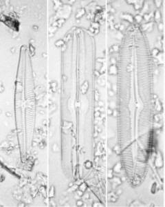 珪藻は海水や淡水に生息する藻類ですので、これらの種類などは生息域や生息環境に違いがあります。珪藻化石からは、その珪藻が含まれている地層が水流のある環境であったとか、淀みのような環境だったがわかります。こうした顕微鏡の下でわかった情報と発掘調査で見つかった遺構や遺物からの情報を組み合わせると当時の人々がその場所でどのような生活をしていたかが、より具体的に目に浮かぶようになります。