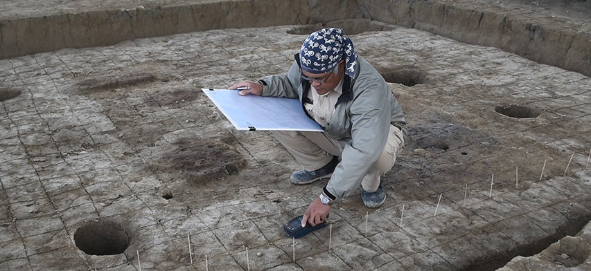 遺構に残る微小な鉄は、土中で溶脱という作用が起こり溶けていく。これを金属探知機※で探すというものです。