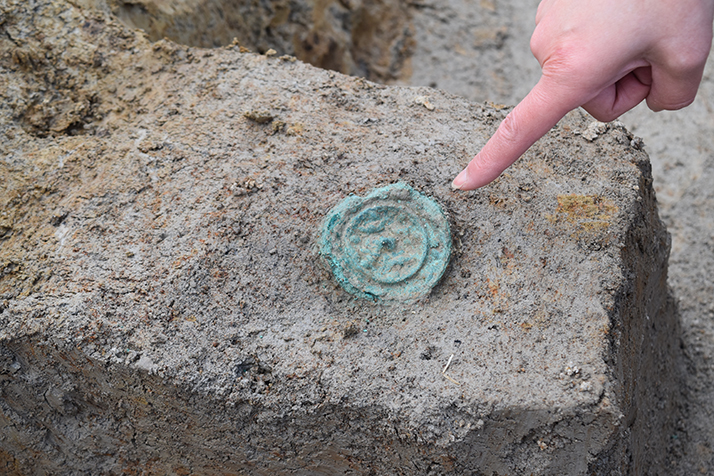 実は鏡が見つかった当日はたまたま私は不在の日で、見つかった次の日の朝に「こんなの出たよ」と伝えられたため、見つかったその瞬間には立ち会えませんでした。そのため記者発表などの際は当事者であるにもかかわらず、やや複雑な気持ちになる遺物です。