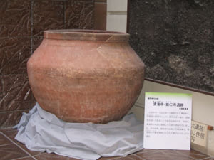 しかし、発見された時には内容物が残っていなかったため、何を入れていたのはまだわかっていません。他府県で報告されている同時期の埋甕遺構の事例を見てみると、味噌・塩・油・水・穀物などの貯蔵などのほかに、古銭(北宋銭など)を蓄銭した例もあります。