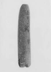 写真にある細長い石は縄文時代に流行する石棒(せきぼう)と呼ばれるお祭りの道具です。縄文時代中期終わり頃からから後期の初め頃には、頭に笠をもつ男根状を呈しますが、縄文時代後期の中頃になると写真のような棒状のものが使われるようになります。