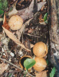 通称“とち”は和名をトチノキと言います。初秋に、大きいものでテニスボールほどの肉厚な外皮(果実)に包まれた実(種子)をつけます(写真1)。種子は、クリの実を丸くしたような姿で、色艶もクリに似ているのですが、クリはそのまま煮たり焼いたりして美味しく食べられるのに対し、トチノキは口に入れると舌がビリビリするくらいアクが強く、食用にするには灰を加えて煮るなどして、サポニン、タンニンといったアク成分を取り除く必要があります(写真2)。