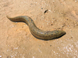ドジョウ(写真4)は大きな水溜まり状になった所でよく見かけます。滞在地の水が無くなると、器用に体をくねらせながら、地表を這(は)って移動する姿を見ることができます。