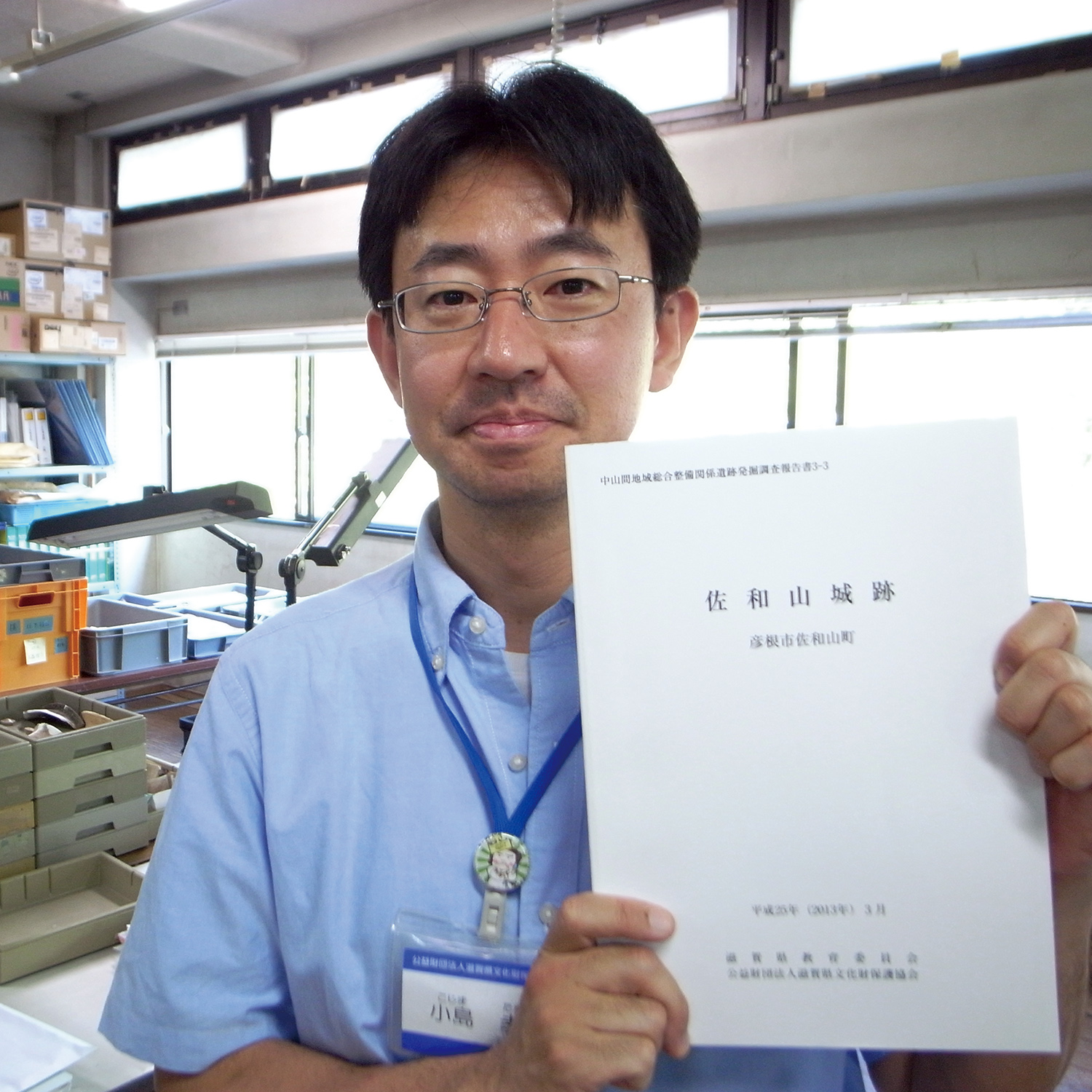 そのほか、松原内湖遺跡・入江内湖遺跡に隣接する彦根市佐和山城跡(さわやまじょうあと)での発掘調査(平成20・21年度)も、思い出深い調査の1つです。石田三成の居城としてよく知られる佐和山城跡の、山麓部分とはいえ初めて行われる発掘調査でしたから、記者発表を行った内堀の発見は、新聞・テレビで大きく取り上げられました。その内堀の現地説明会には合計約400人もの見学者が来られましたが、通常の現地説明会とは異なり、いわゆる「歴女」といわれるような方々が多く参加されたことが印象に残っています。また、中日新聞でも第1面で取り上げてもらったので、長野県に住む両親にも私自身の姿を新聞で見てもらえた、はじめての発掘調査となりました。