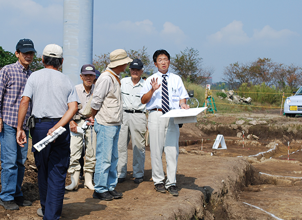 関津(せきのつ)遺跡、佐和山城遺跡、浄土屋敷遺跡などのほ場整備事業の調査を経て、平成24年度以降は事業の調整や当協会の運営を中心とした業務にあたり、現在にいたっています。発掘調査の担当を離れて久しくなりますが、県シルバー連合会からの委託による発掘技能講習や講座等の講師を務めることで、かつての調査の経験や知識のもと、発掘調査の必要性や重要性を伝えればと思い取り組んでいます。