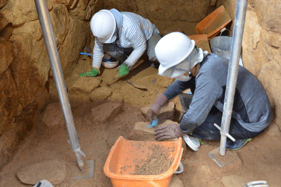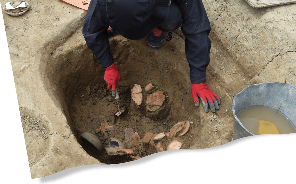 長い歴史の中で、私たちは知恵と工夫を積み重ねて暮らしてきました。その痕跡は遺跡の中に残されていますが、地域の開発を進めていくなかで、どうしても未来に残せない場合も生じます。発掘調査とは、そんな遺跡に残された暮らしの痕跡を掘り起こし、写真や図面等の記録として「保存」し、未来へ残していく仕事です。