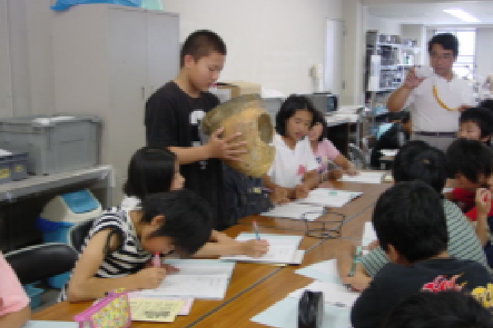 また、博物館などの「展示」への遺物貸出、あるいは小中学校等の教育現場への教材としての資料貸出、一般の人の資料見学への対応、などがあります。